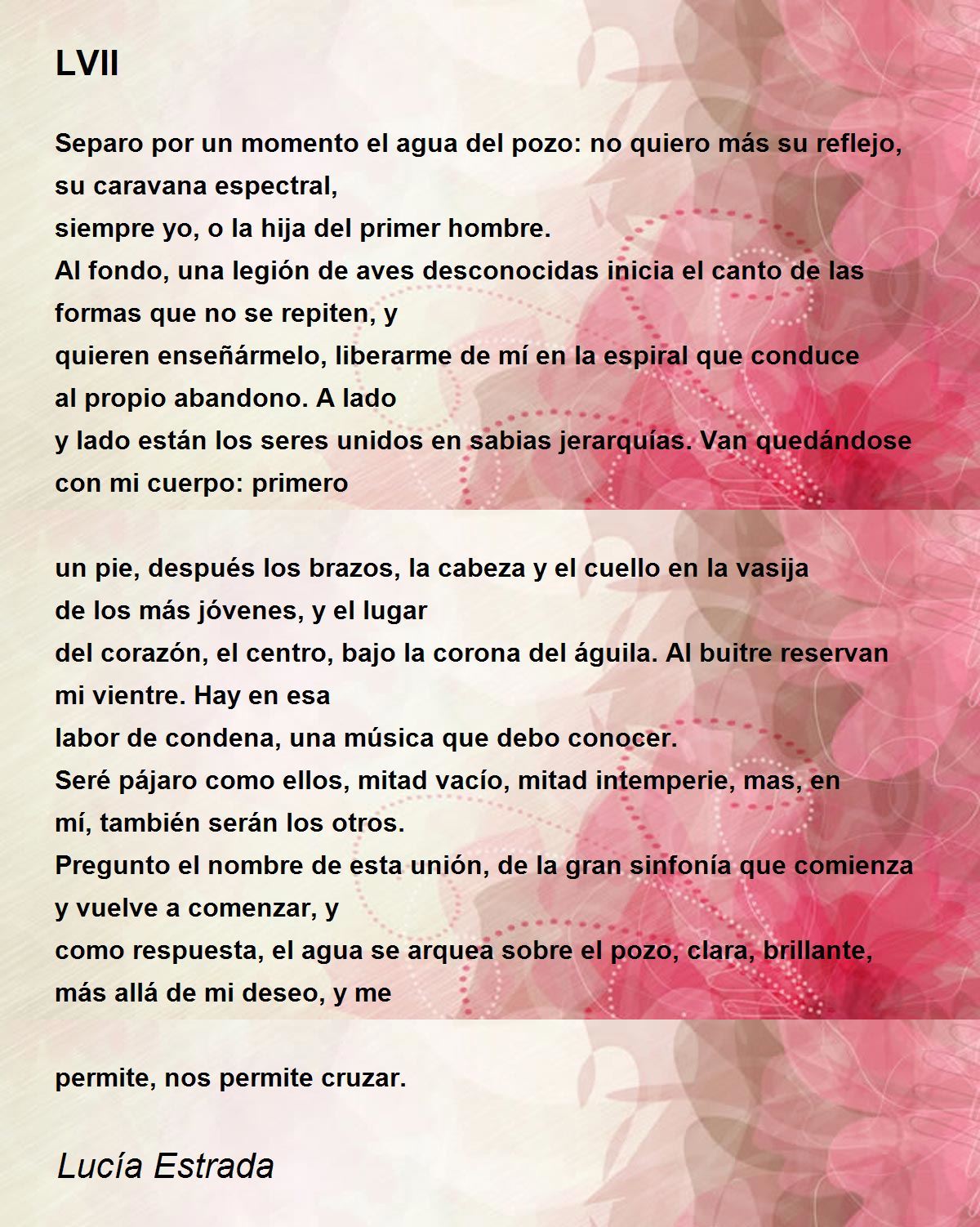 Separo por un momento el agua del pozo: no quiero más su reflejo, su caravana espectral,