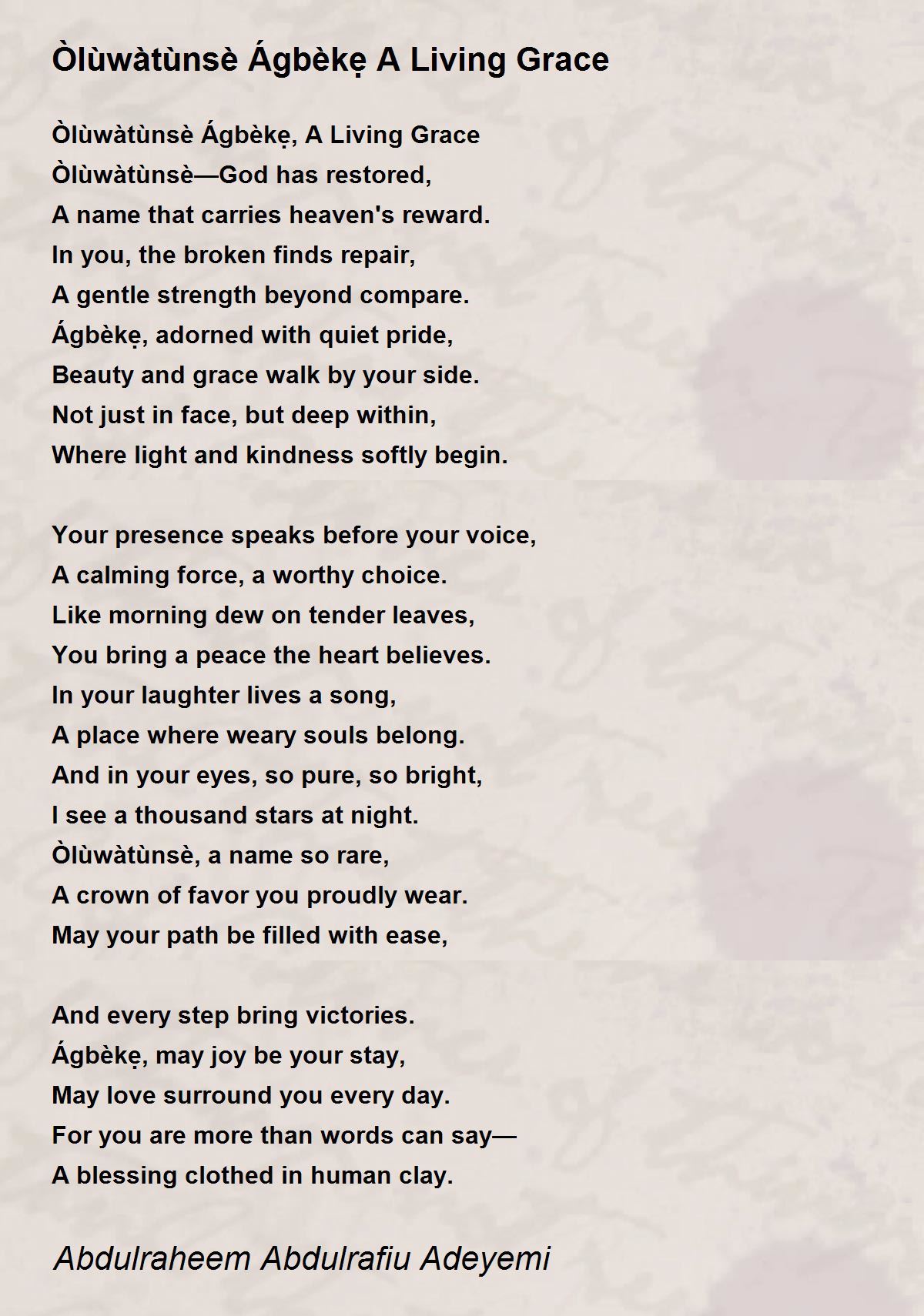 Òlùwàtùnsè Ágbèkẹ, A Living Grace