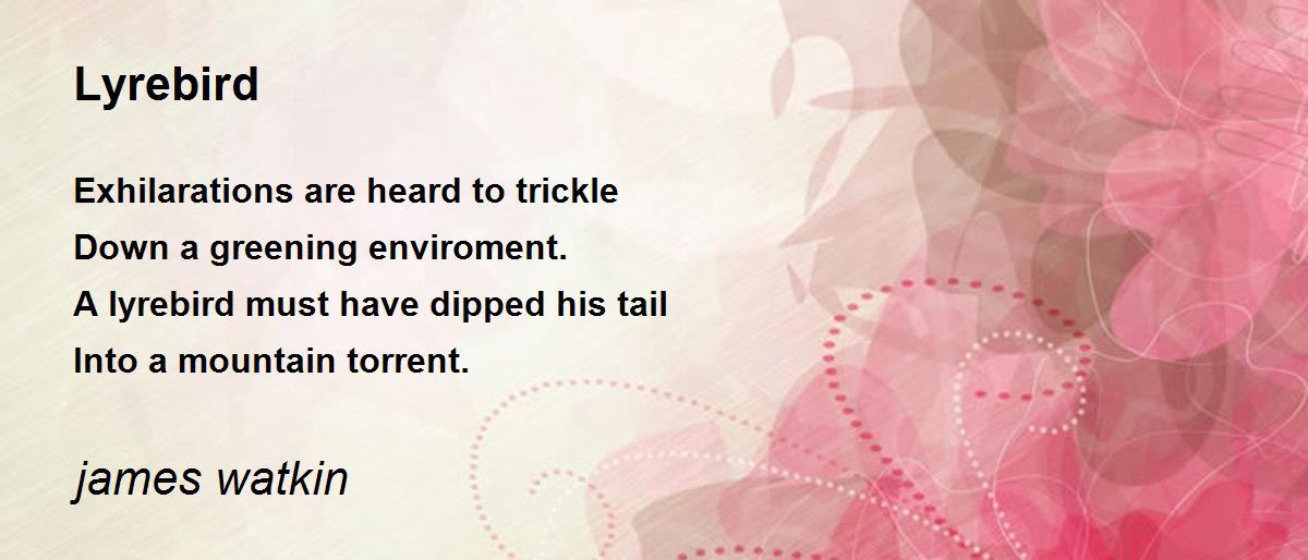 Exhilarations are heard to trickle Down a greening enviroment. A lyrebird must have dipped his tail Into a mountain torrent.