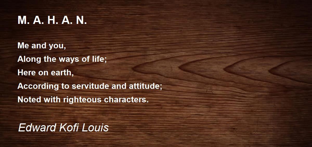 Me and you, Along the ways of life; Here on earth, According to servitude and attitude; Noted with righteous characters.