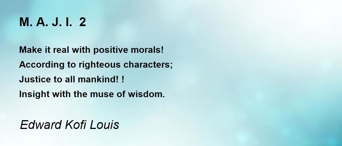 Make it real with positive morals! According to righteous characters; Justice to all mankind! ! Insight with the muse of wisdom.