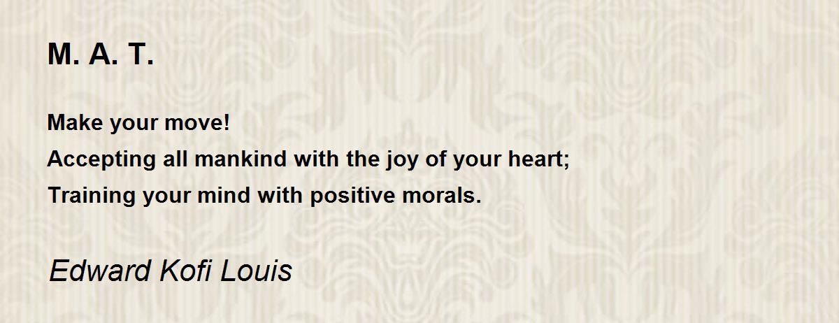 Make your move! Accepting all mankind with the joy of your heart; Training your mind with positive morals.