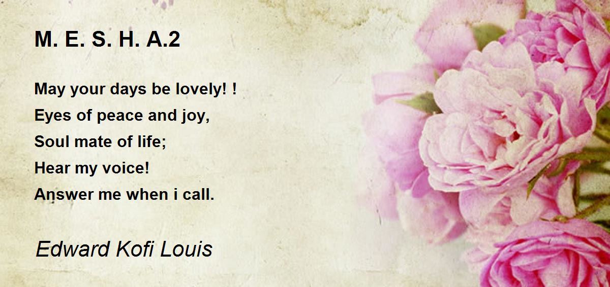 May your days be lovely! ! Eyes of peace and joy, Soul mate of life; Hear my voice! Answer me when i call.