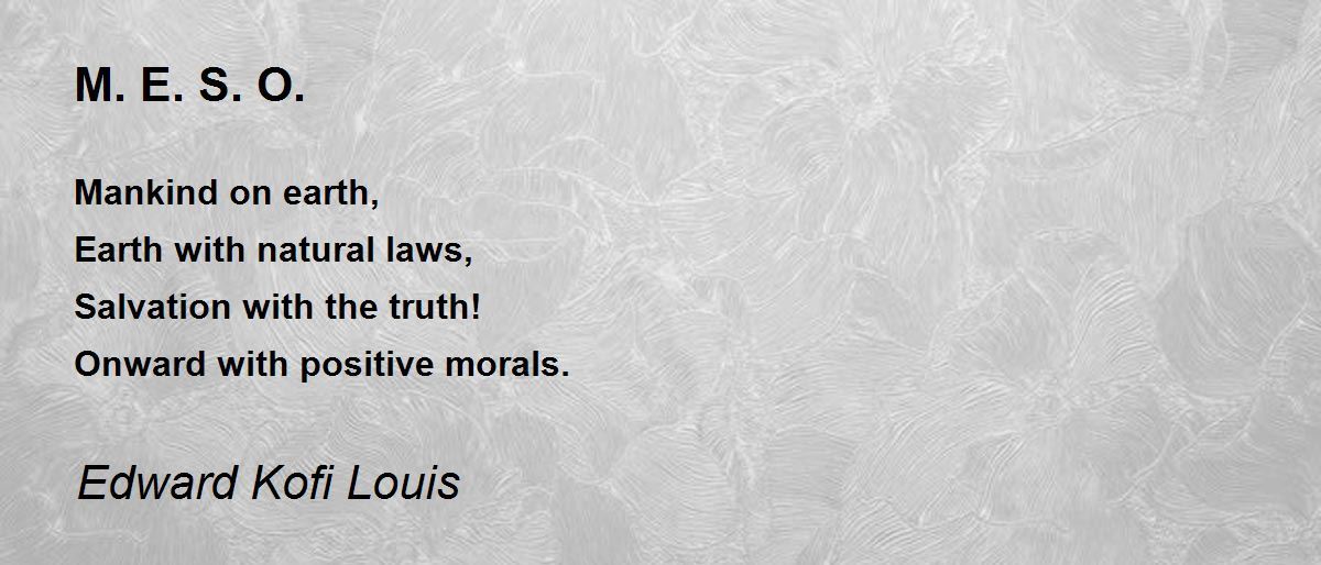 Mankind on earth, Earth with natural laws, Salvation with the truth! Onward with positive morals.