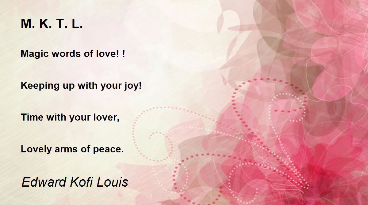 Magic words of love! ! Keeping up with your joy! Time with your lover, Lovely arms of peace.