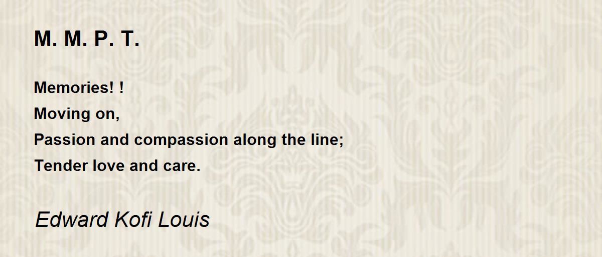 Memories! ! Moving on, Passion and compassion along the line; Tender love and care.