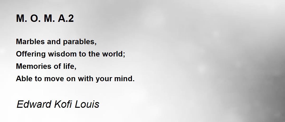 Marbles and parables, Offering wisdom to the world; Memories of life, Able to move on with your mind.