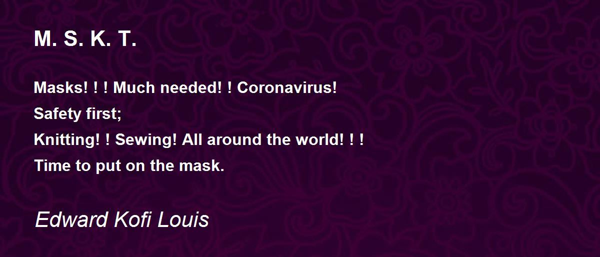 Safety first! ! ! ! Facing the virus. Thanks for your comment on my poem. Stay blessed always.