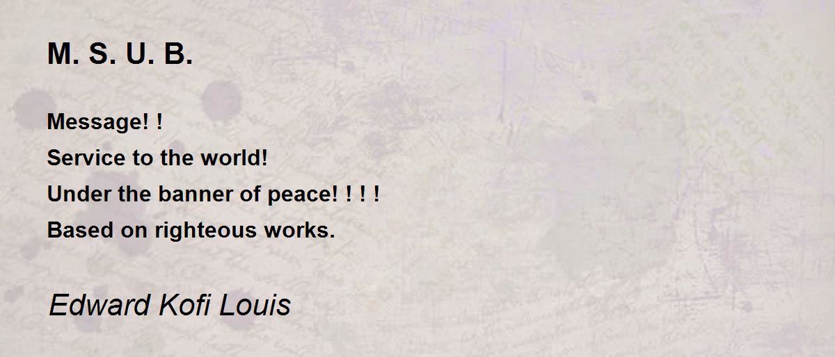 Message! ! Service to the world! Under the banner of peace! ! ! ! Based on righteous works.