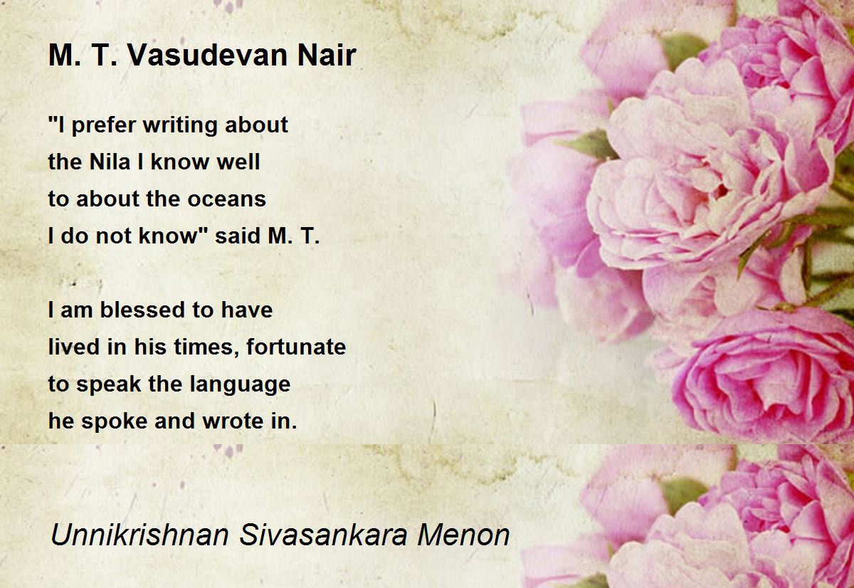 MT, though, wrote about anything under the sun with equal skill and mastery, not just about Nila.