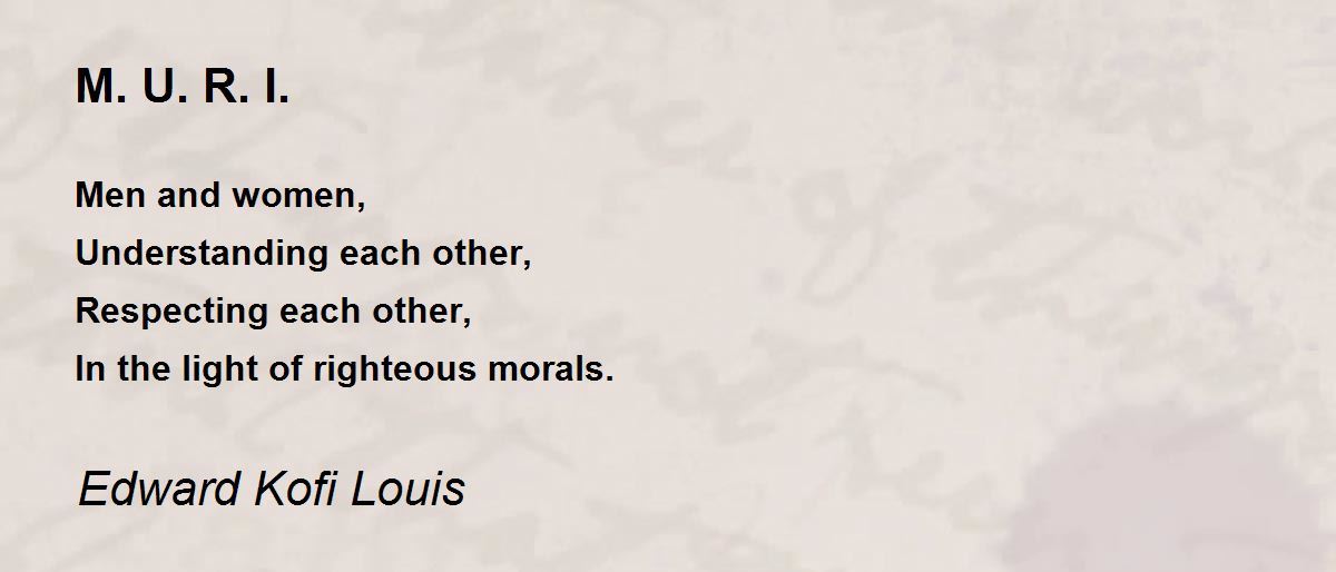 Men and women, Understanding each other, Respecting each other, In the light of righteous morals.