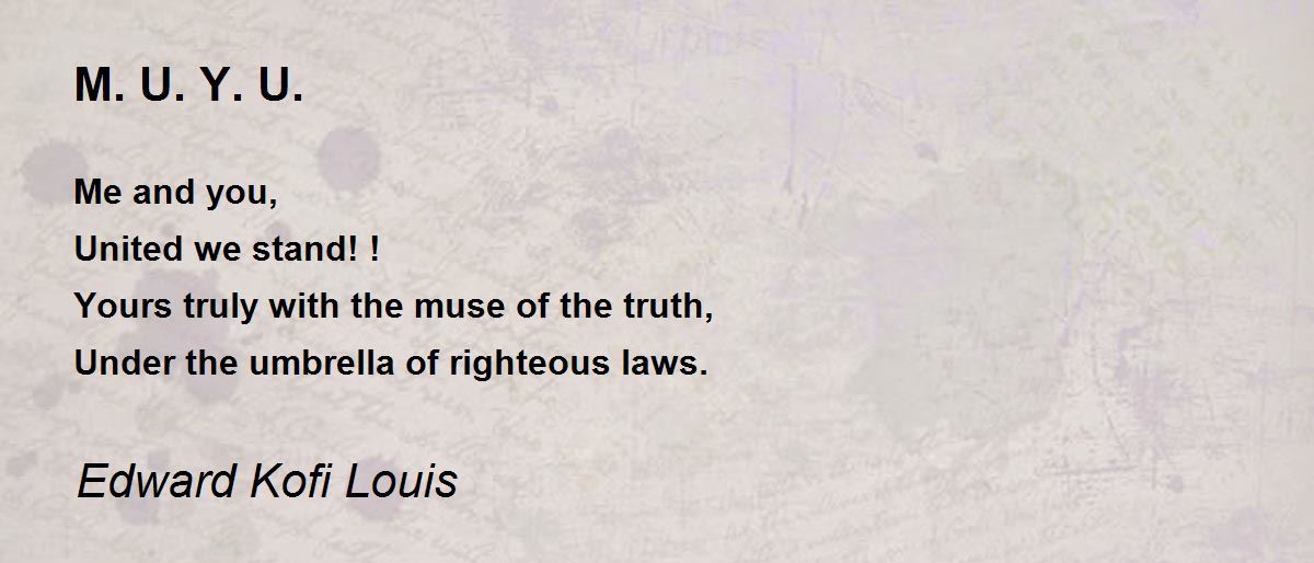 Me and you, United we stand! ! Yours truly with the muse of the truth, Under the umbrella of righteous laws.