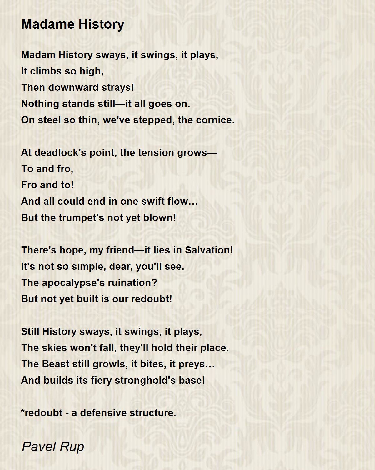 Madam History sways, it swings, it plays,