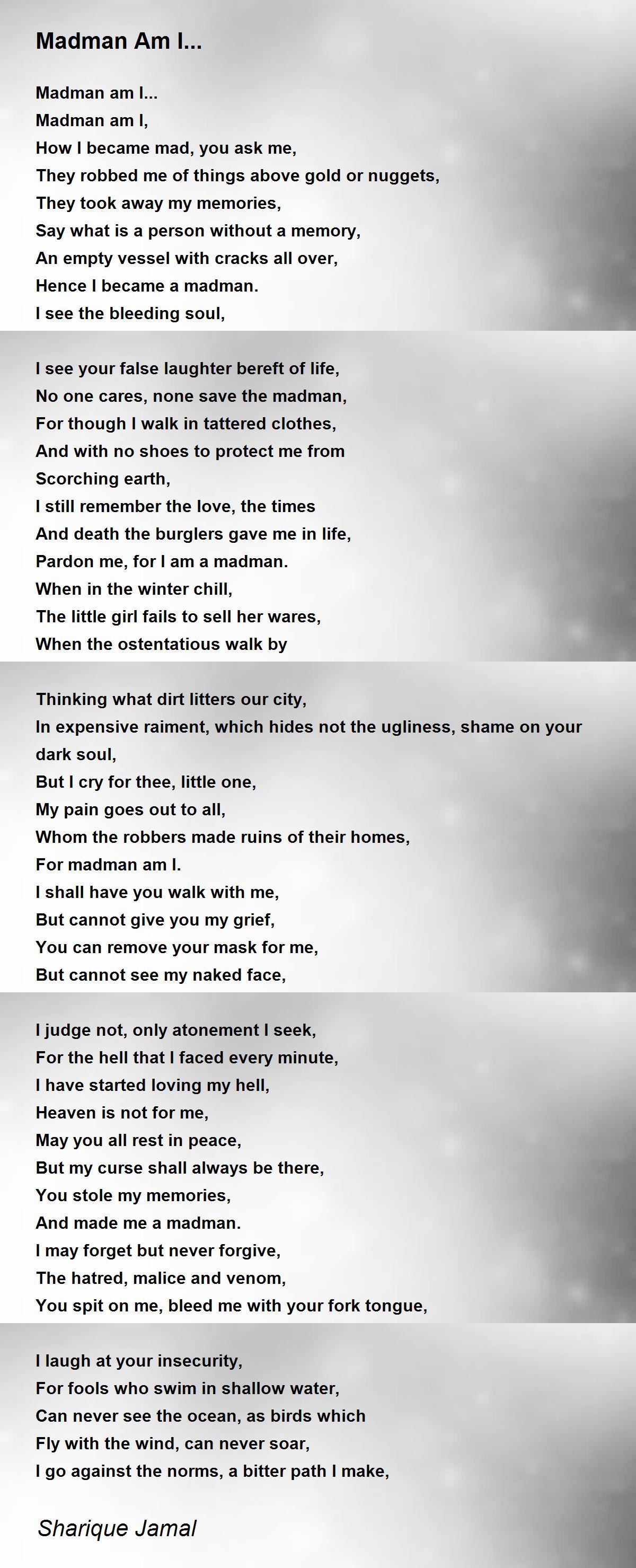 In expensive raiment, which hides not the ugliness, shame on your dark soul,