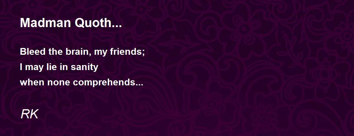 Bleed the brain, my friends; I may lie in sanity when none comprehends...