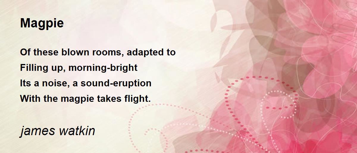 Of these blown rooms, adapted to Filling up, morning-bright Its a noise, a sound-eruption With the magpie takes flight.