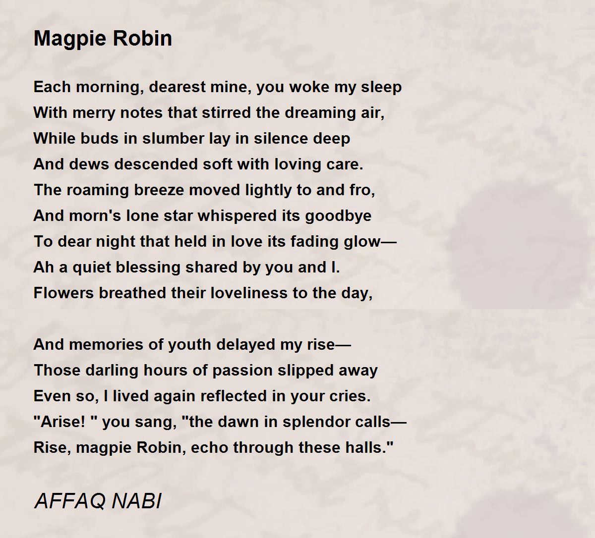 Rise, magpie Robin, echo through these halls."