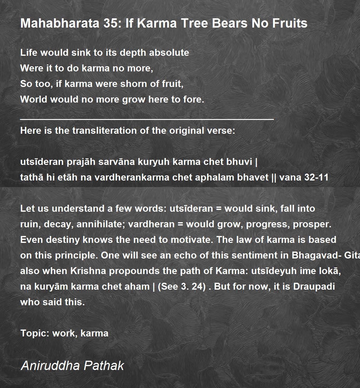 Even destiny knows the need to motivate. The law of karma is based on this principle. One will see an echo of this sentiment in Bhagavad-Gita also when Krishna propounds the path of Karma: utsīdeyuh ime lokā, na kuryām karma chet aham | (See 3.24) . But for now, it is Draupadi who said this.