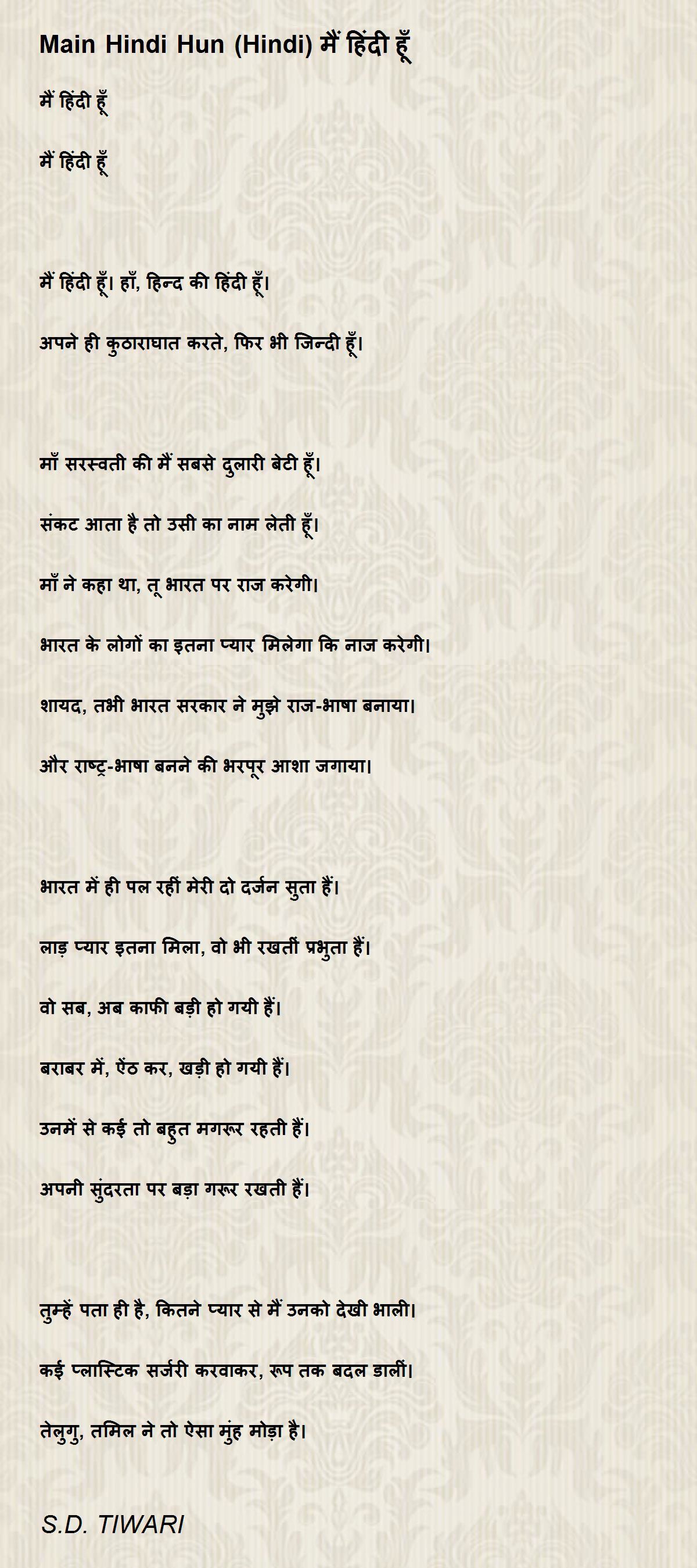मैं हिंदी हूँ। हाँ, हिन्द की हिंदी हूँ।