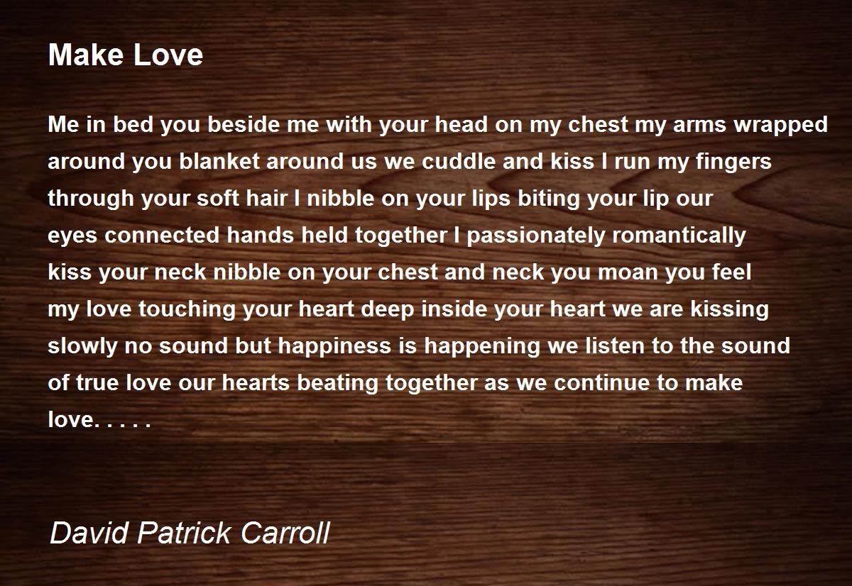 Me in bed you beside me with your head on my chest my arms wrapped around you blanket around us we cuddle and kiss I run my fingers through your soft hair I nibble on your lips biting your lip our eyes connected hands held together I passionately romantically kiss your neck nibble on your chest and neck you moan you feel my love touching your heart deep inside your heart we are kissing slowly no sound but happiness is happening we listen to the sound of true love our hearts beating together as we continue to make love.....