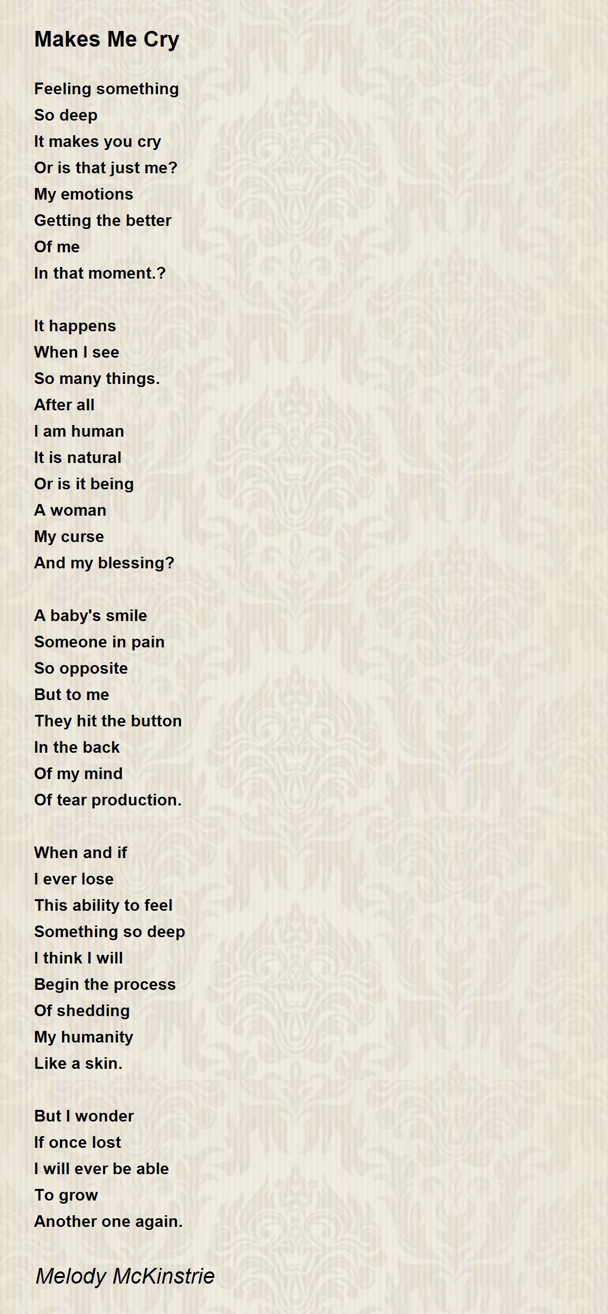 Crying is one of the human emotions. There are tears of pain and tears of joy. I love your poem, dear Ma’am Melody.....10++++