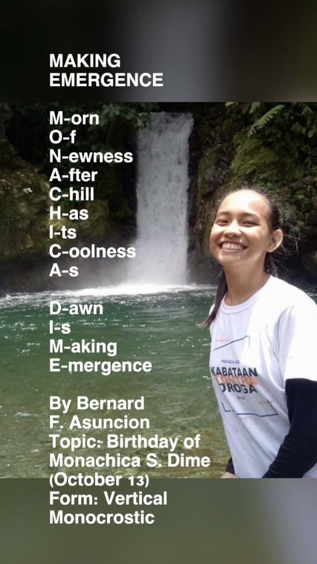 Topic: Birthday of Monachica S. Dime (October 13)