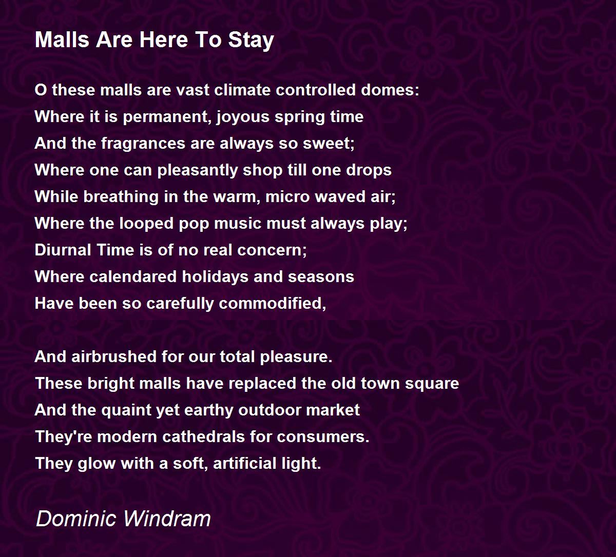 Realities of malls of modern times are depicted so well here. Yes they are modern cathedrals of consumerism.