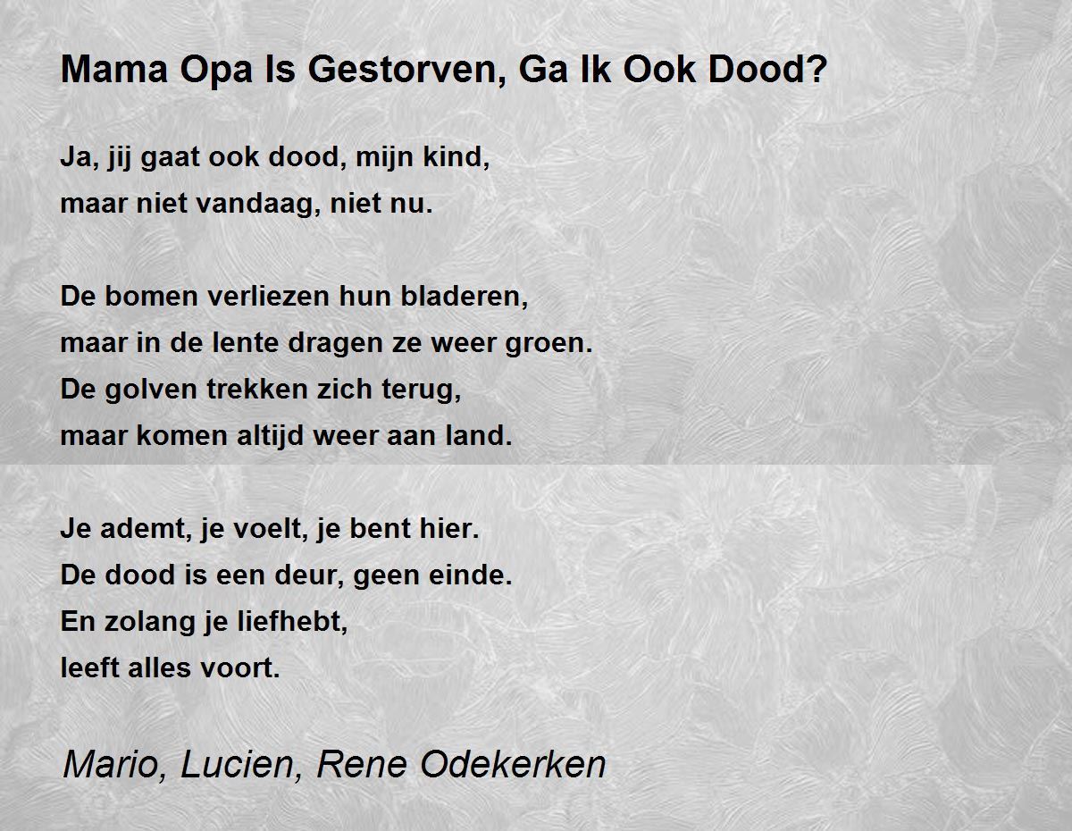 Ja, jij gaat ook dood, mijn kind,