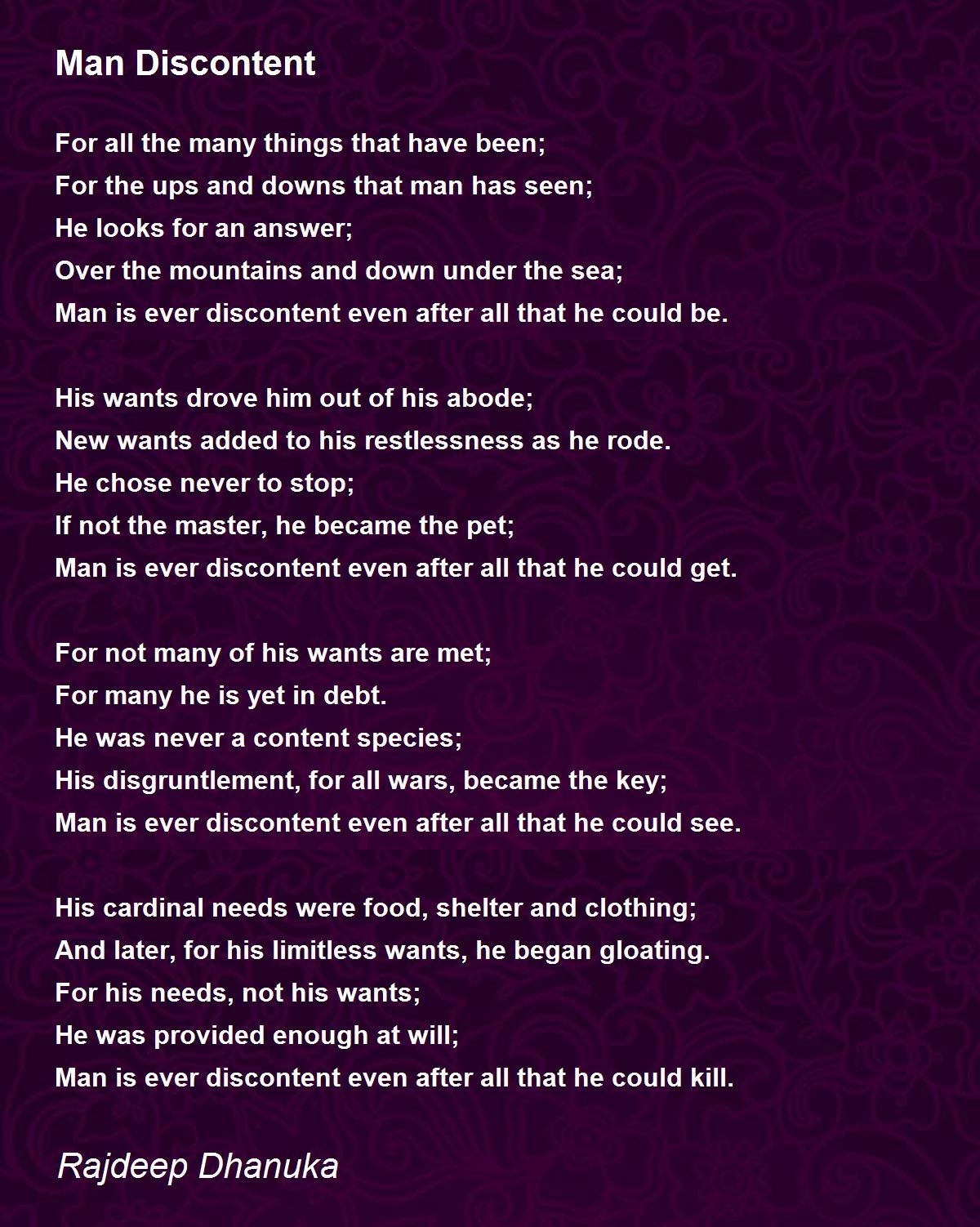 Man is ever discontent even after all that he could be.