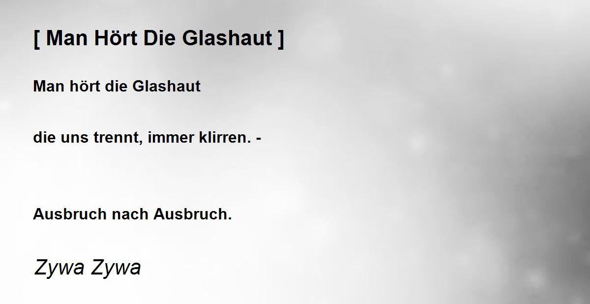 Man hört die Glashaut die uns trennt, immer klirren. - Ausbruch nach Ausbruch.