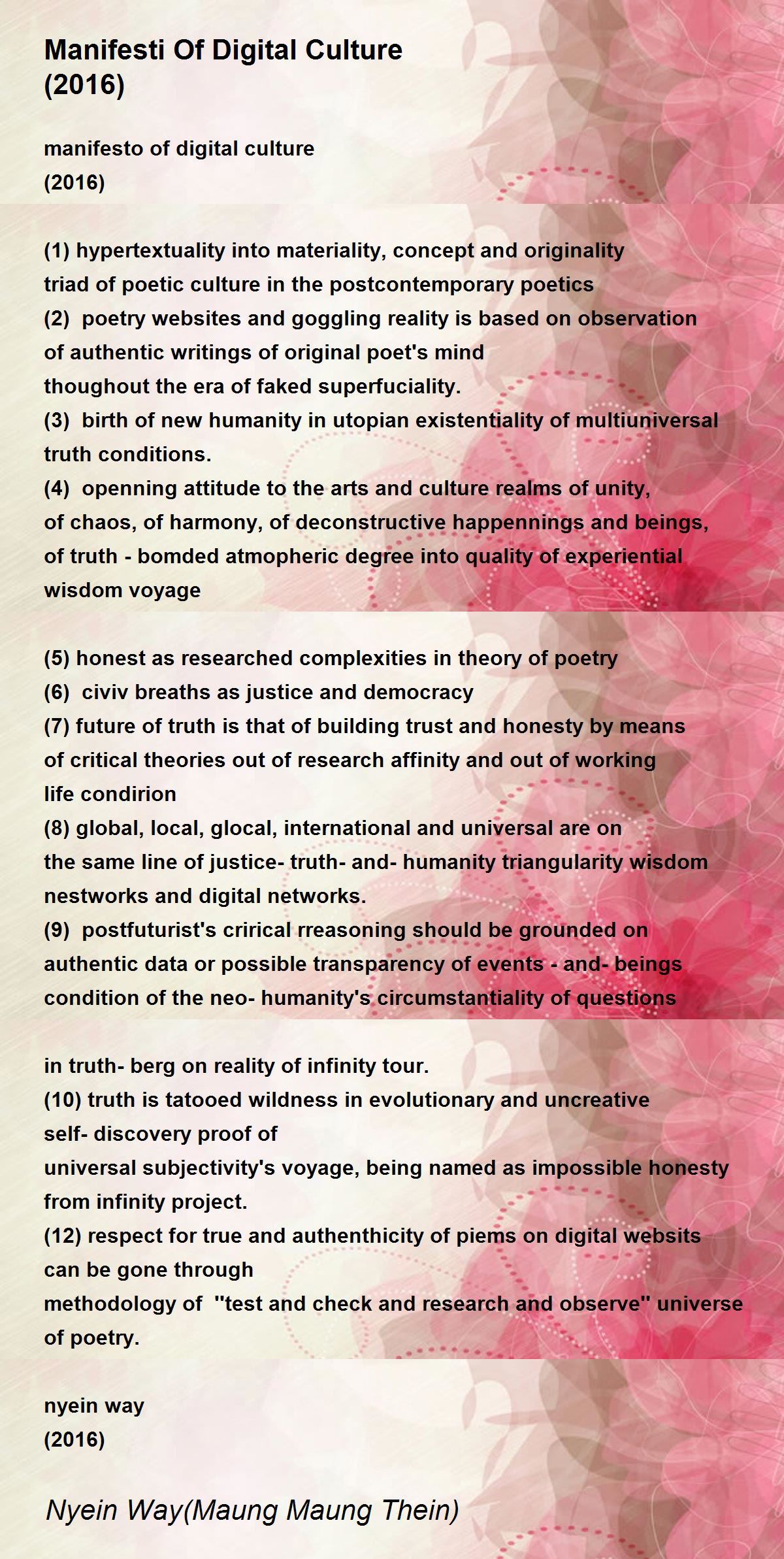 (12) respect for true and authenthicity of piems on digital websits can be gone through