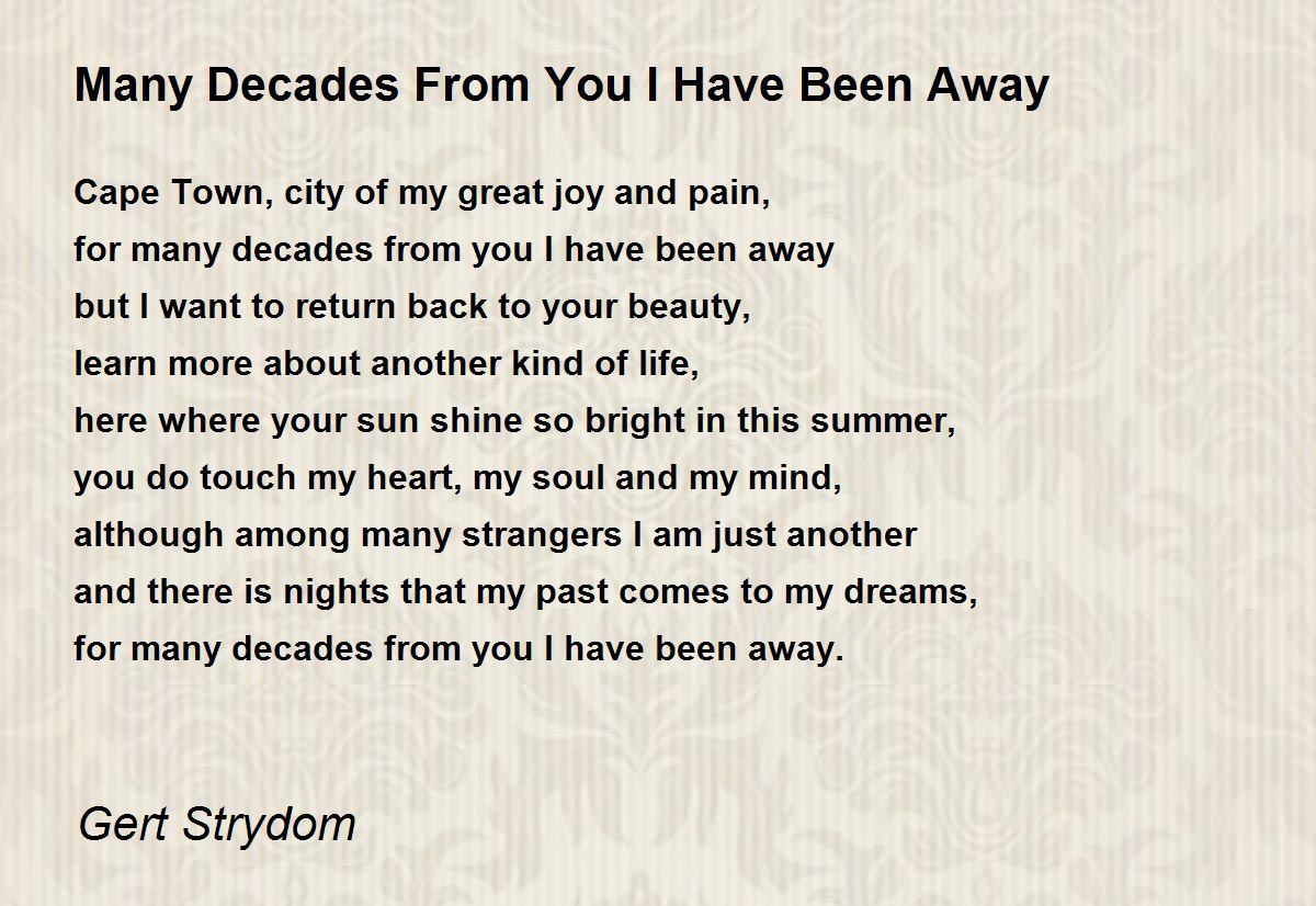 Many Decades From You I Have Been Away Poem by Gert Strydom