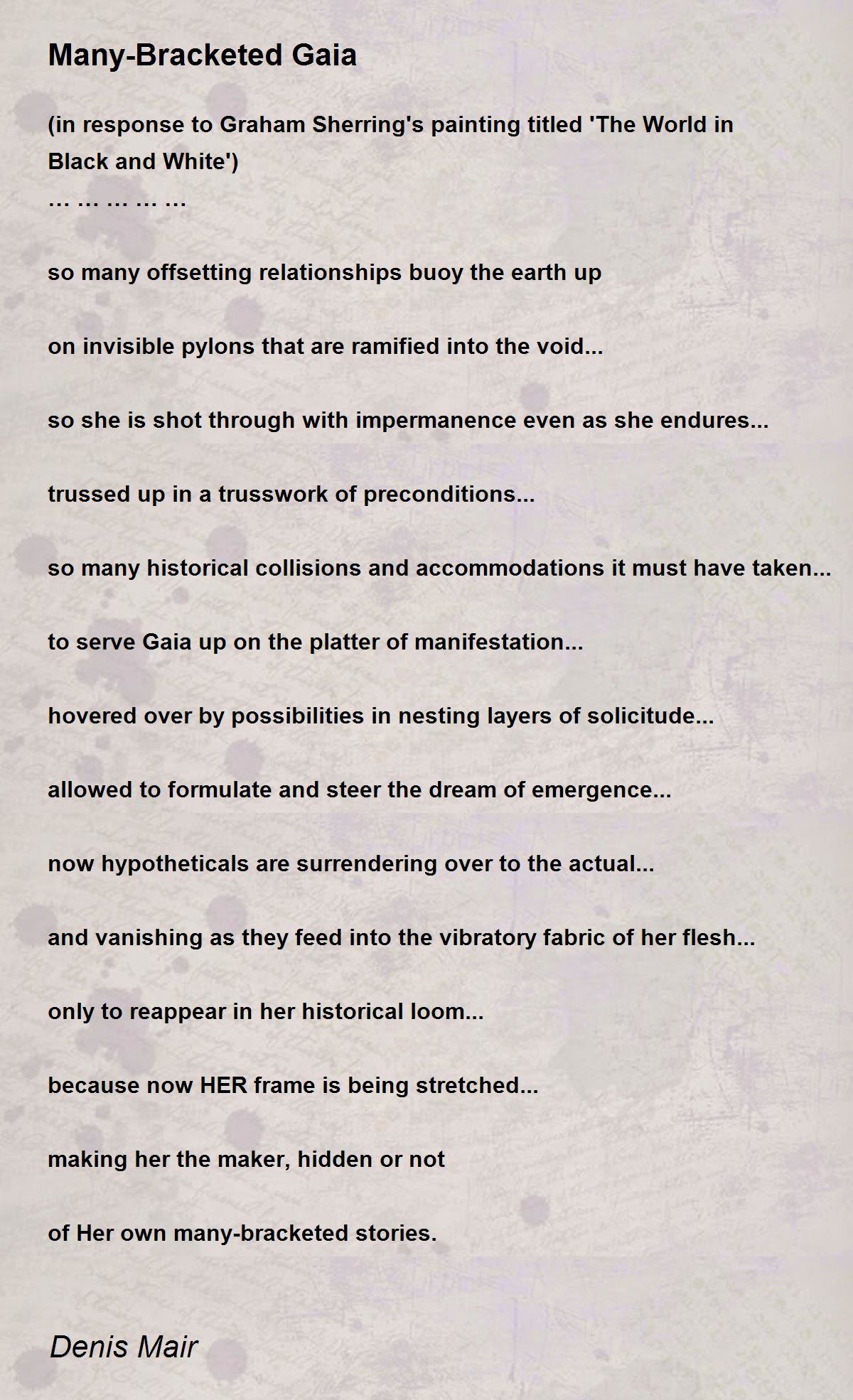 (in response to Graham Sherring's painting titled 'The World in Black and White')