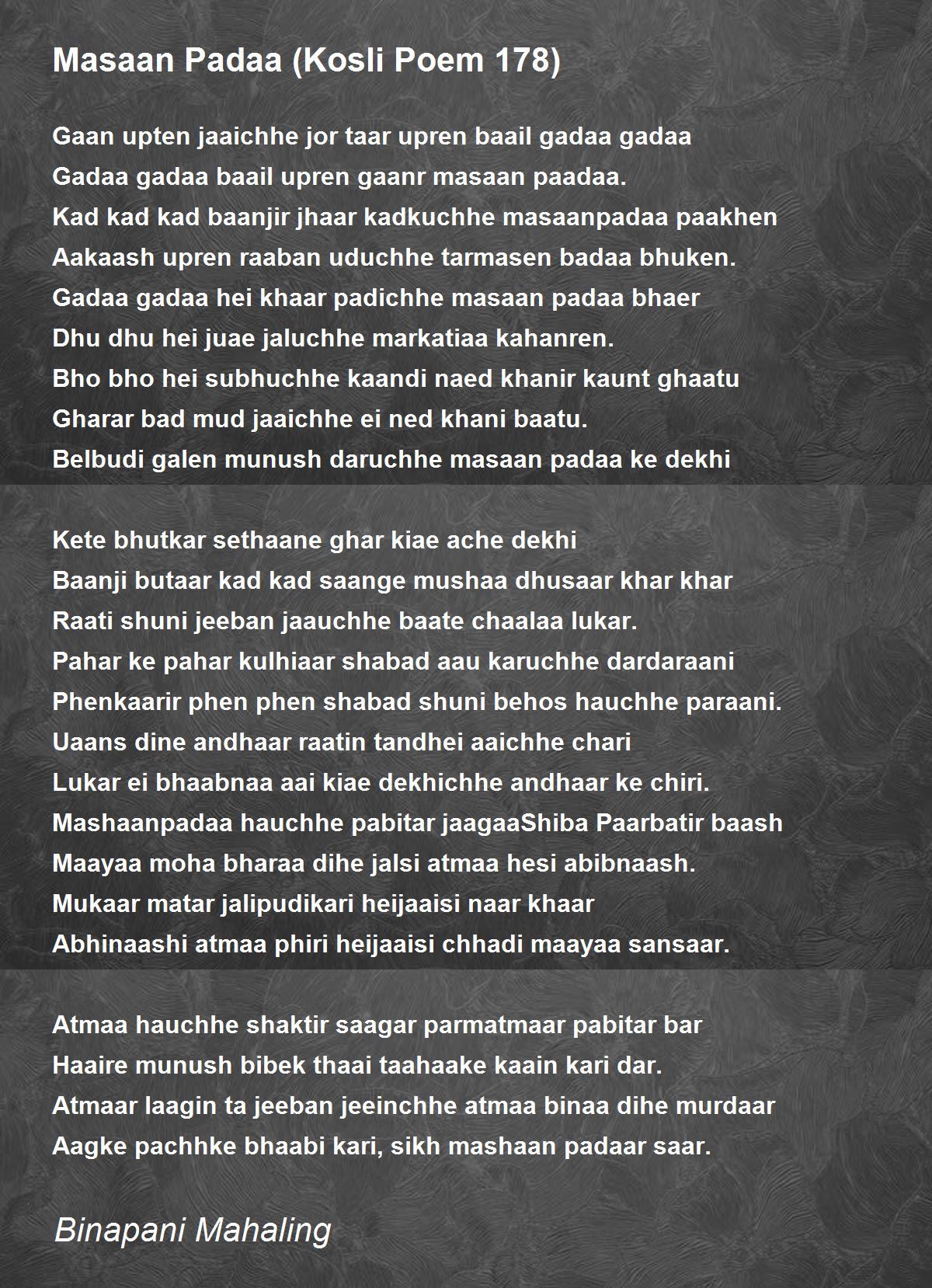 Gadaa gadaa hei khaar padichhe masaan padaa bhaer