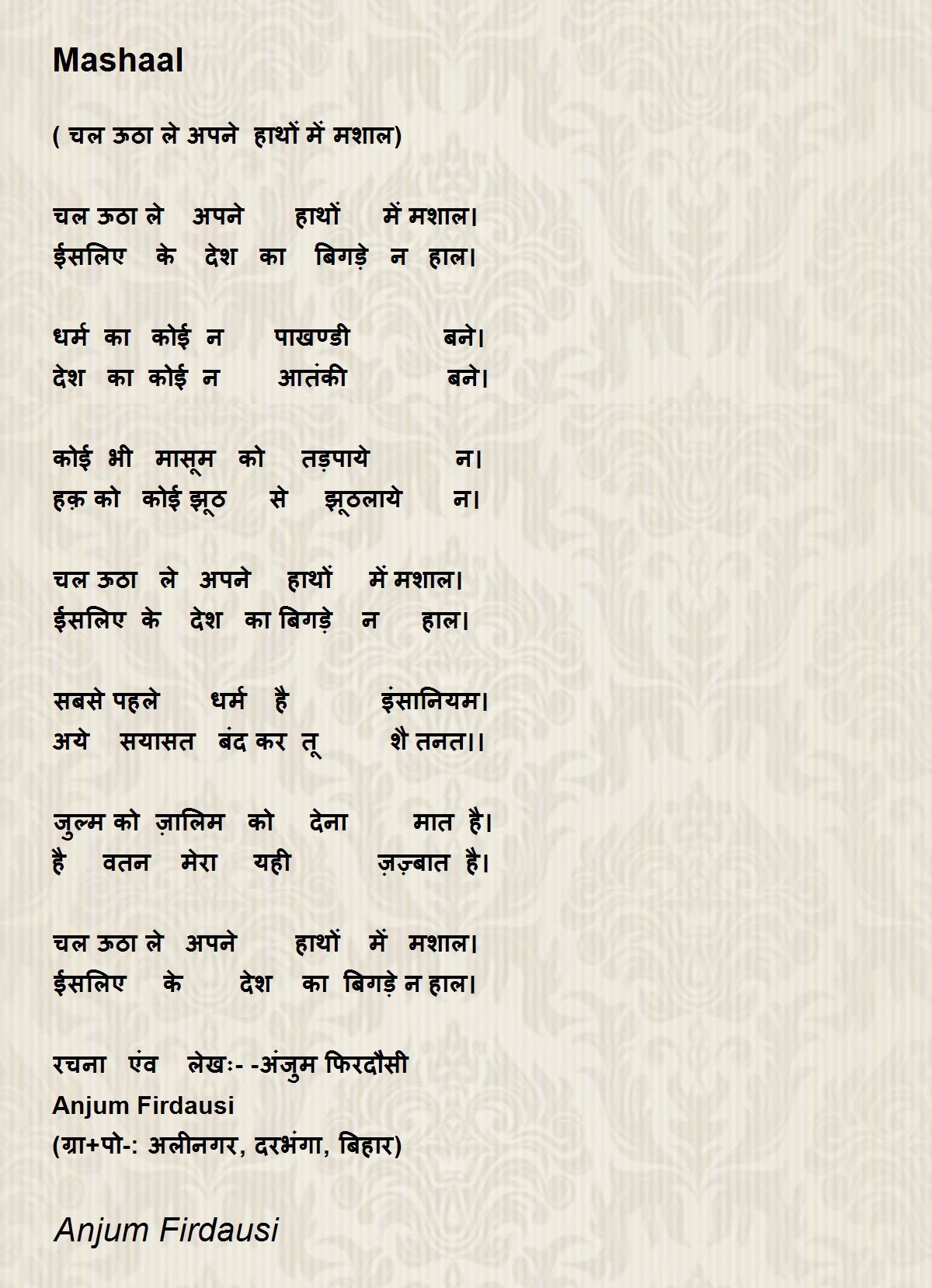 ( चल ऊठा ले अपने हाथों में मशाल)