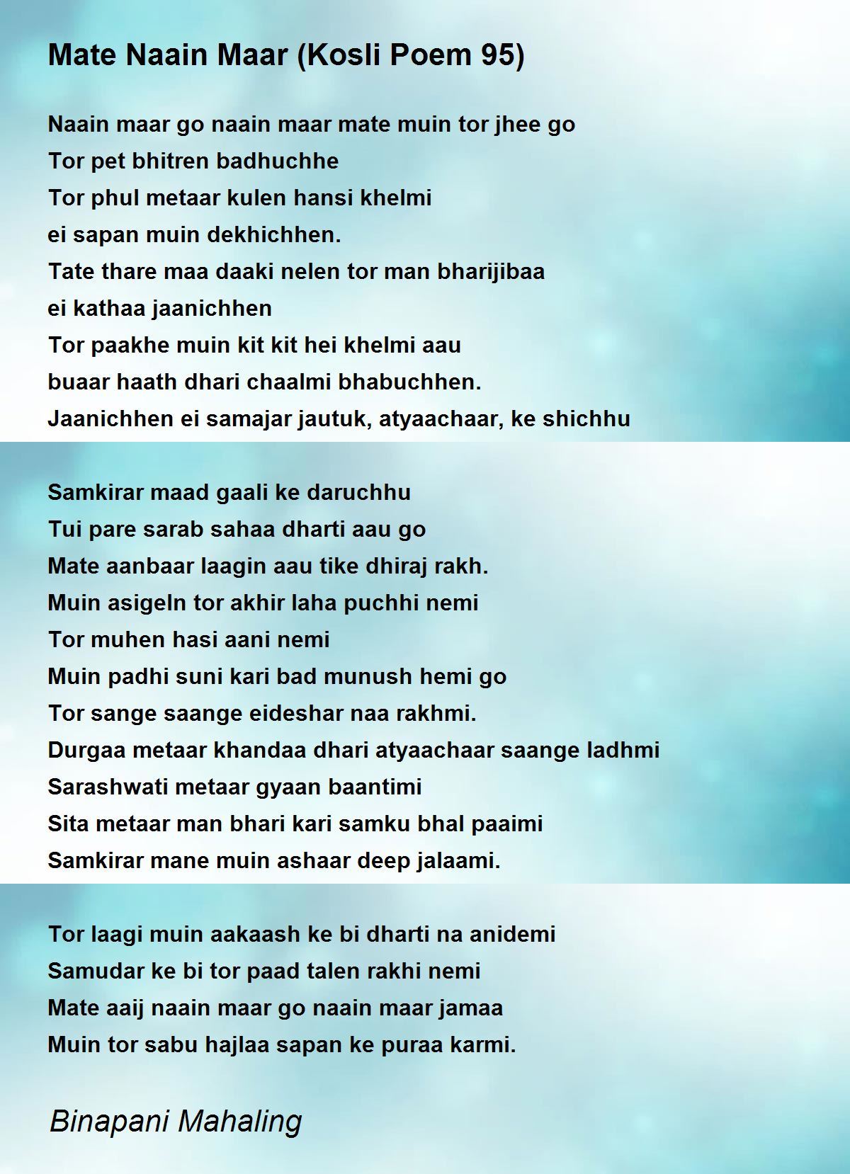 This poem in koshli carries a noble message to whole mankind. Big 8