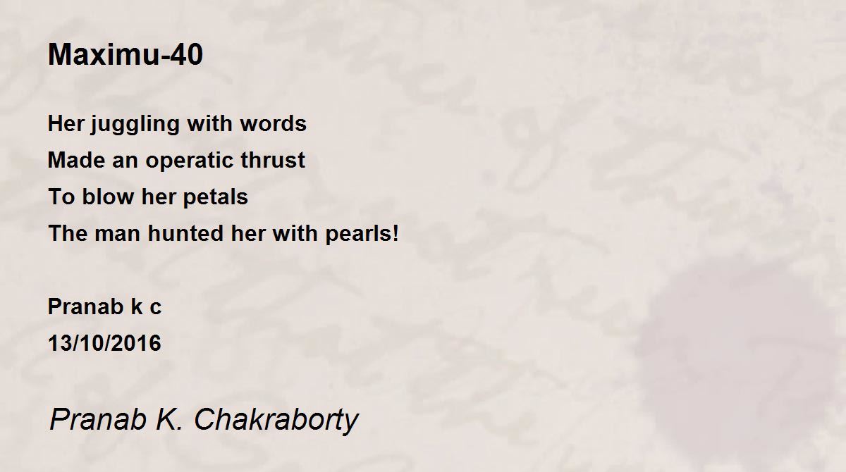 Her juggling with words Made an operatic thrust To blow her petals The man hunted her with pearls! Pranab k c 13/10/2016