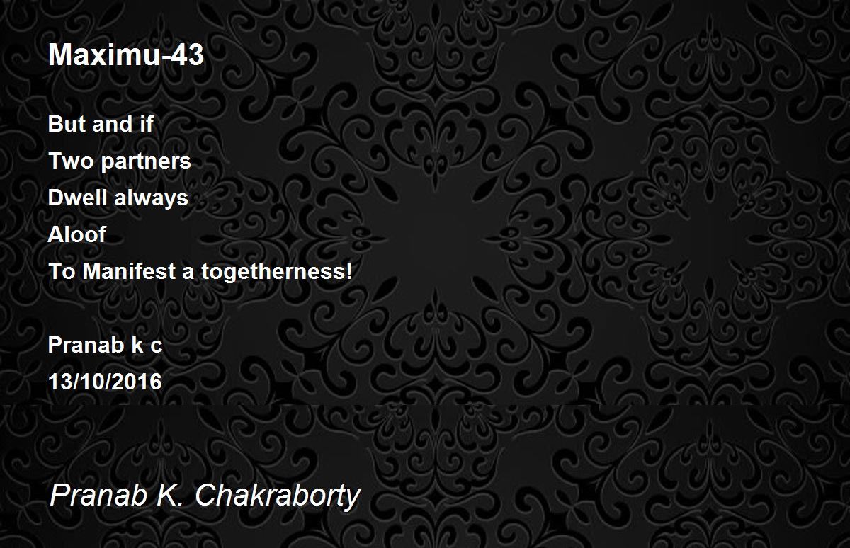 But and if Two partners Dwell always Aloof To Manifest a togetherness! Pranab k c 13/10/2016