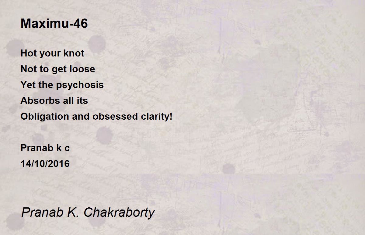Hot your knot Not to get loose Yet the psychosis Absorbs all its Obligation and obsessed clarity! Pranab k c 14/10/2016