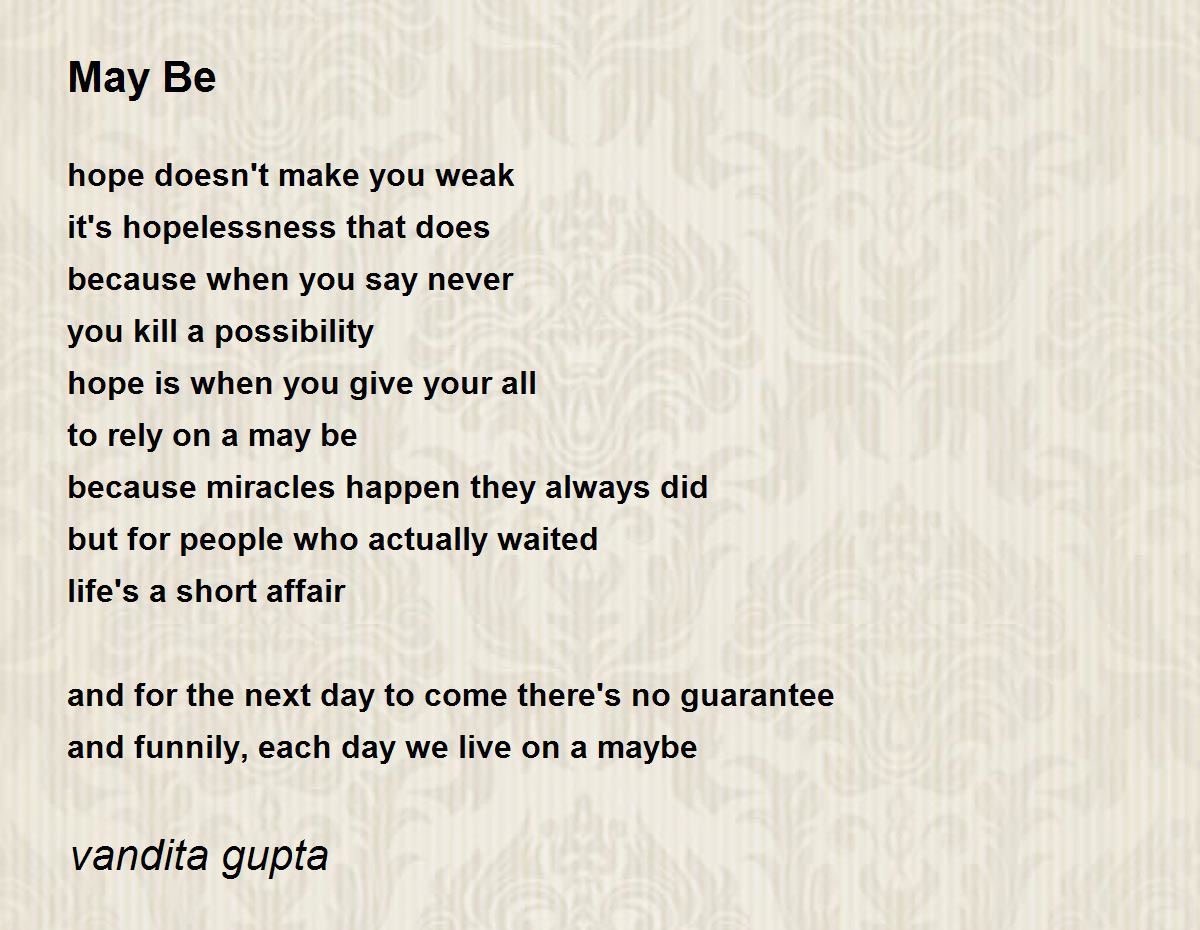 more to hope than dream and work together but it hope is when you give your all to rely on a may be because miracles happened they always did but for people who actually waited