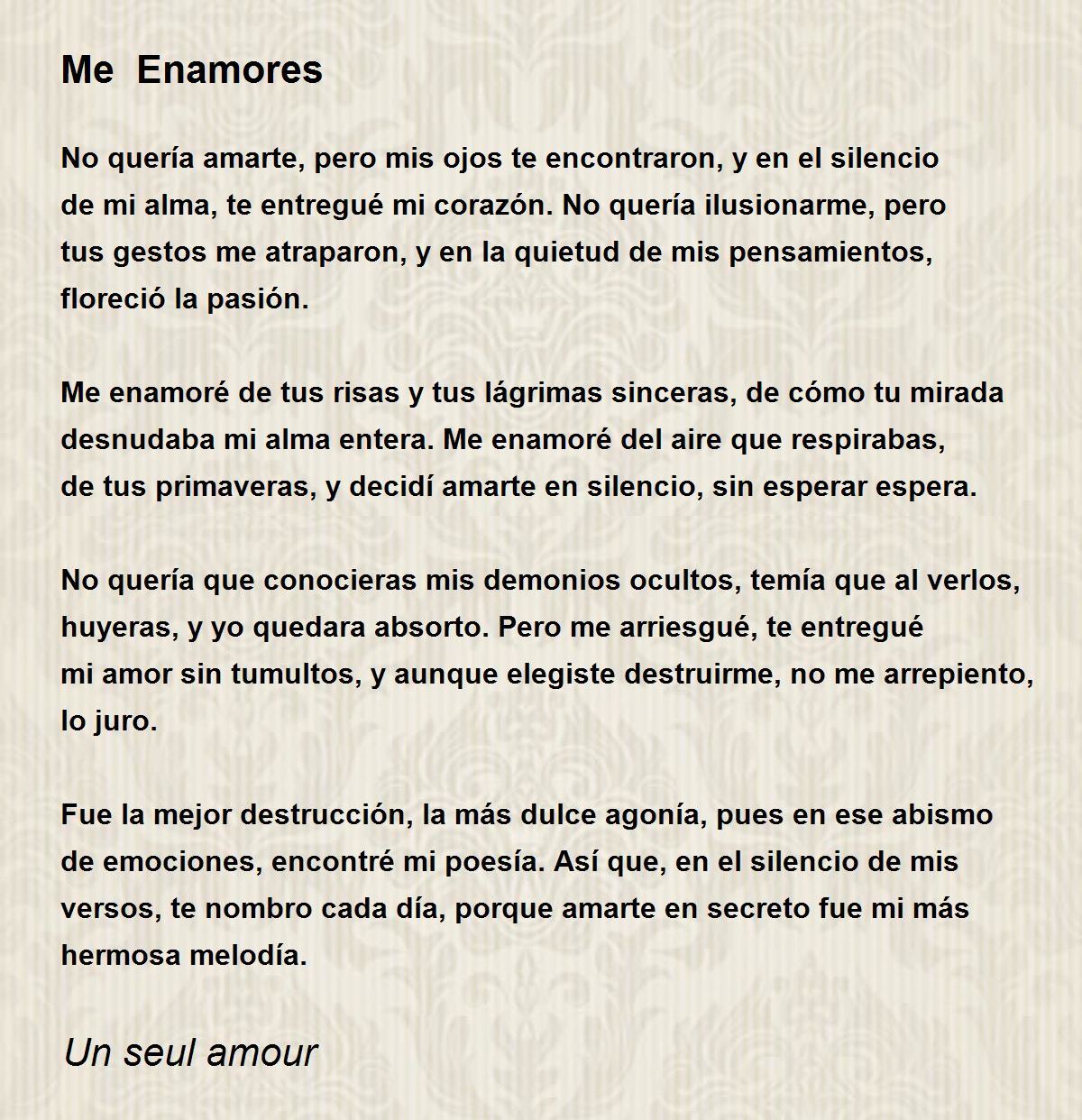 No quería amarte, pero mis ojos te encontraron, y en el silencio de mi alma, te entregué mi corazón. No quería ilusionarme, pero tus gestos me atraparon, y en la quietud de mis pensamientos, floreció la pasión.