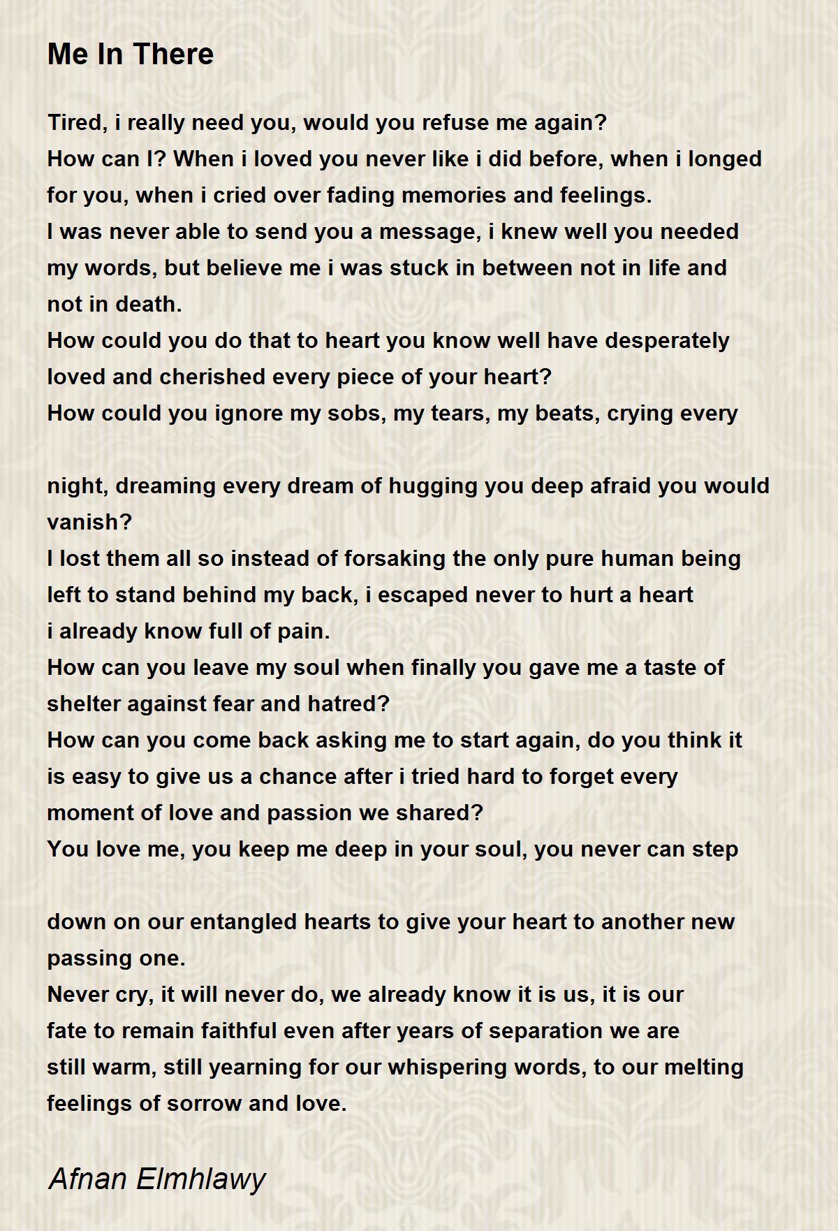 I was never able to send you a message, i knew well you needed my words, but believe me i was stuck in between not in life and not in death.