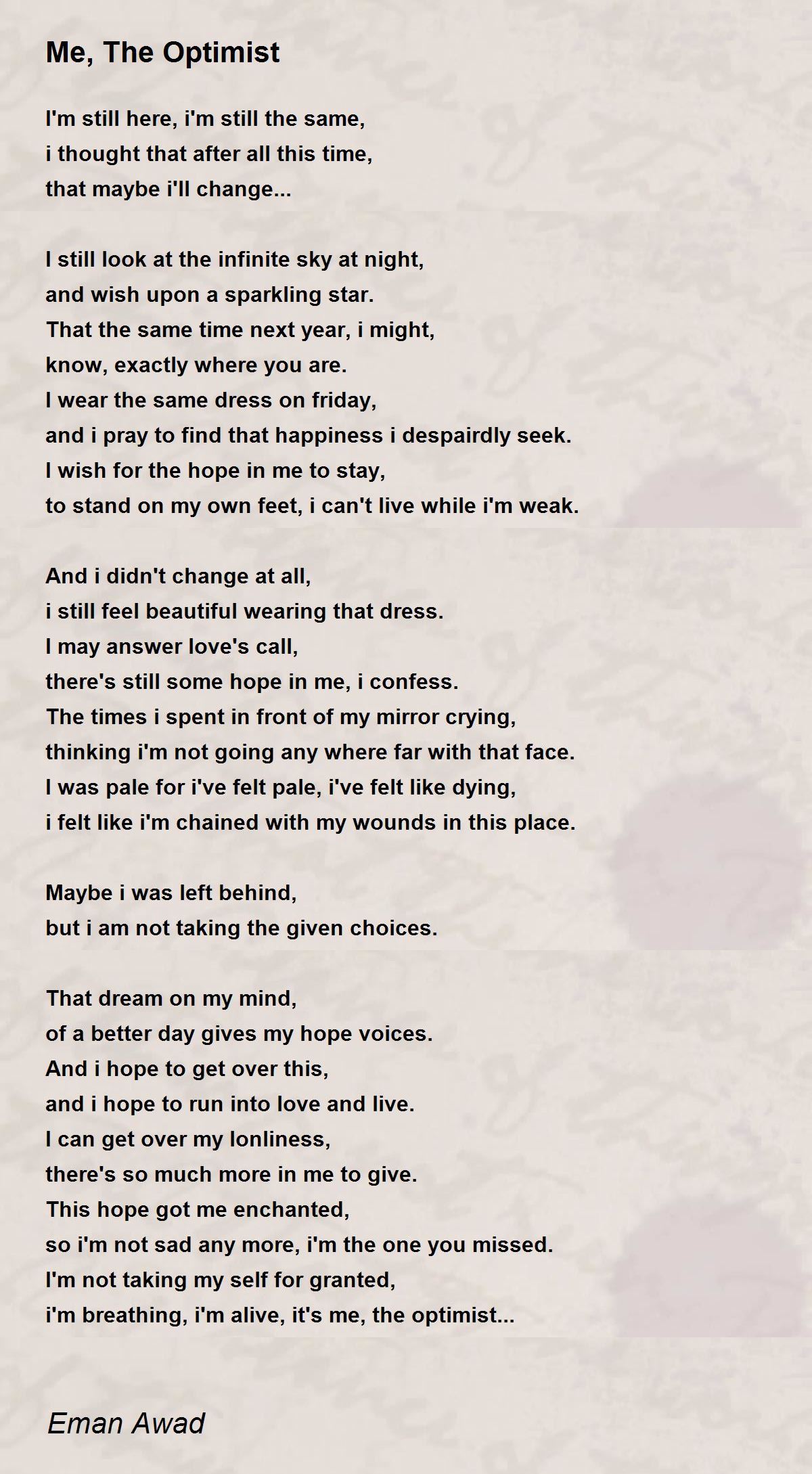 i'm breathing, i'm alive, it's me, the optimist...