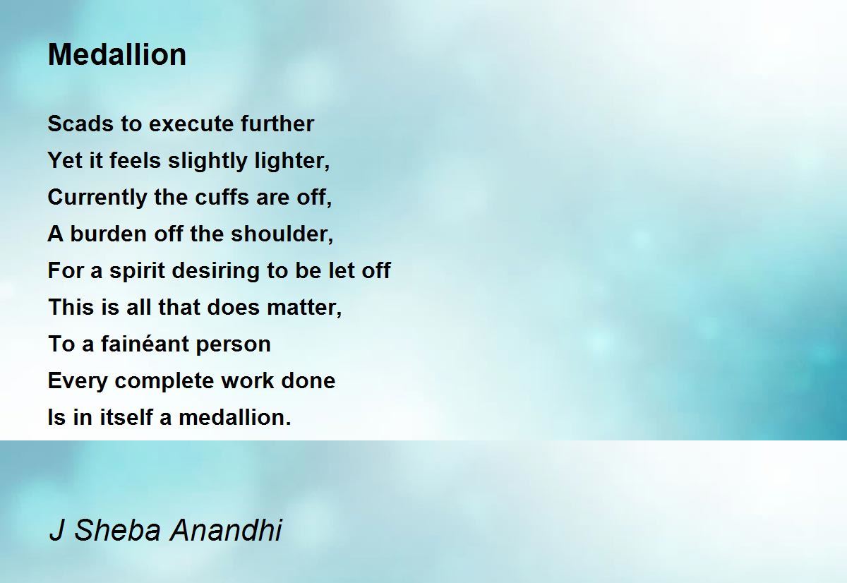 'This is all that does matter, To a fainéant person Every complete work done Is in itself a medallion.' - Loved the recognition given to the 'fainéant person'.
