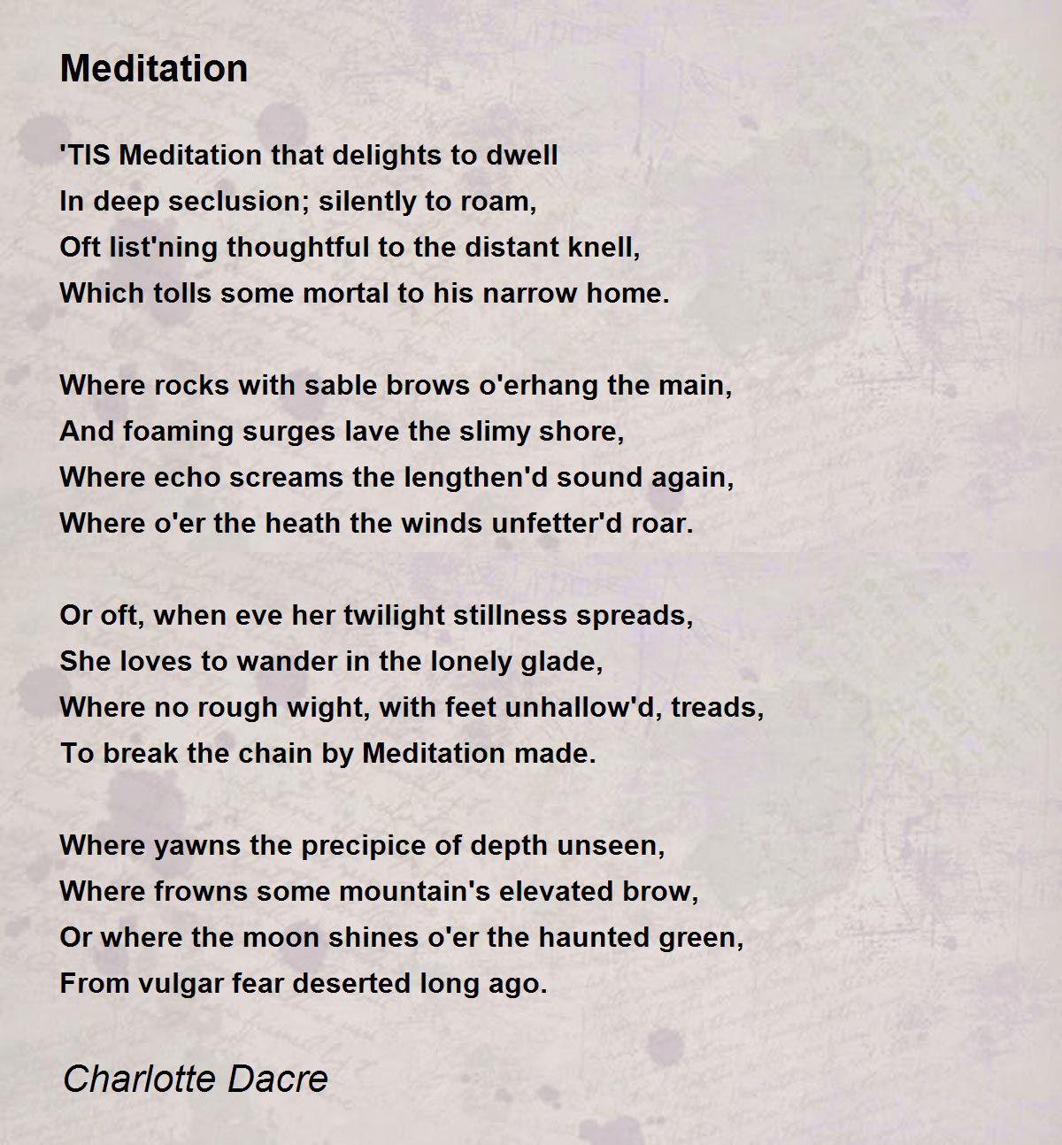 'TIS Meditation that delights to dwell