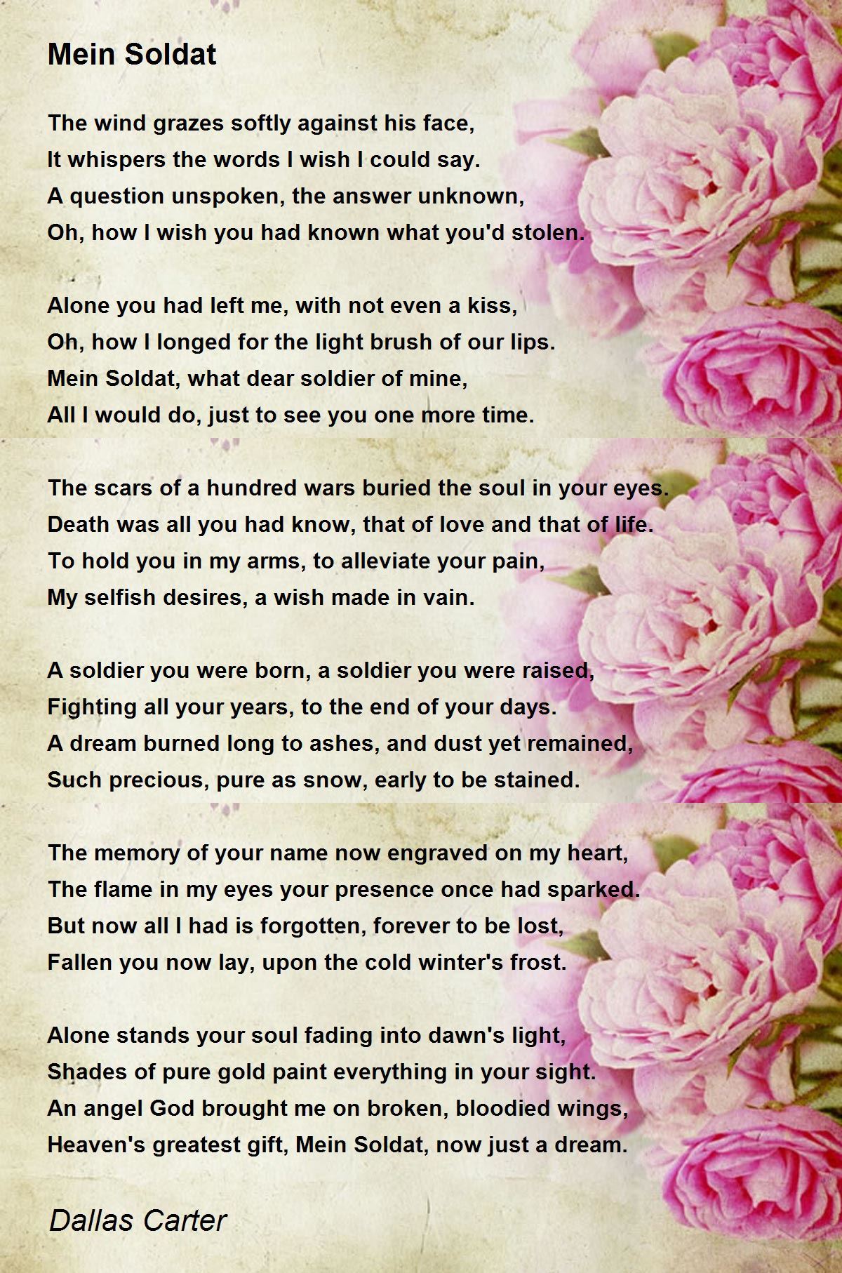 Heaven's greatest gift, Mein Soldat, now just a dream.