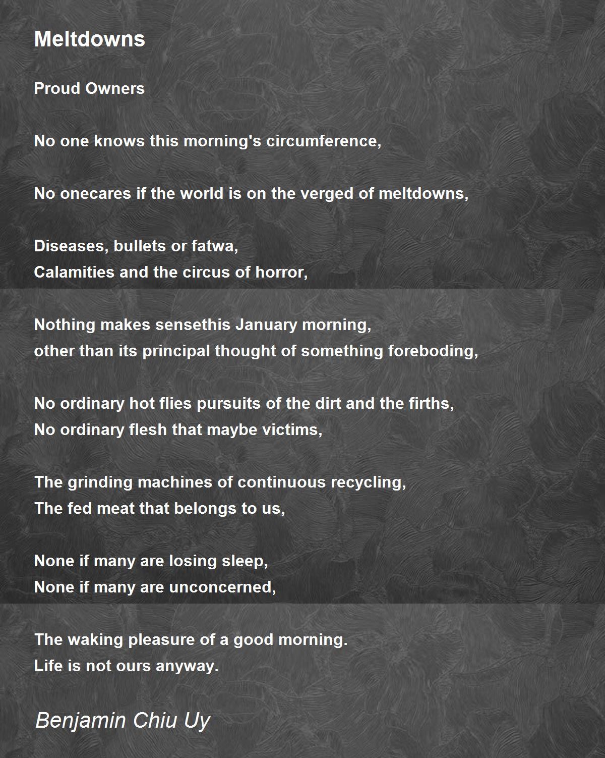 No onecares if the world is on the verged of meltdowns,