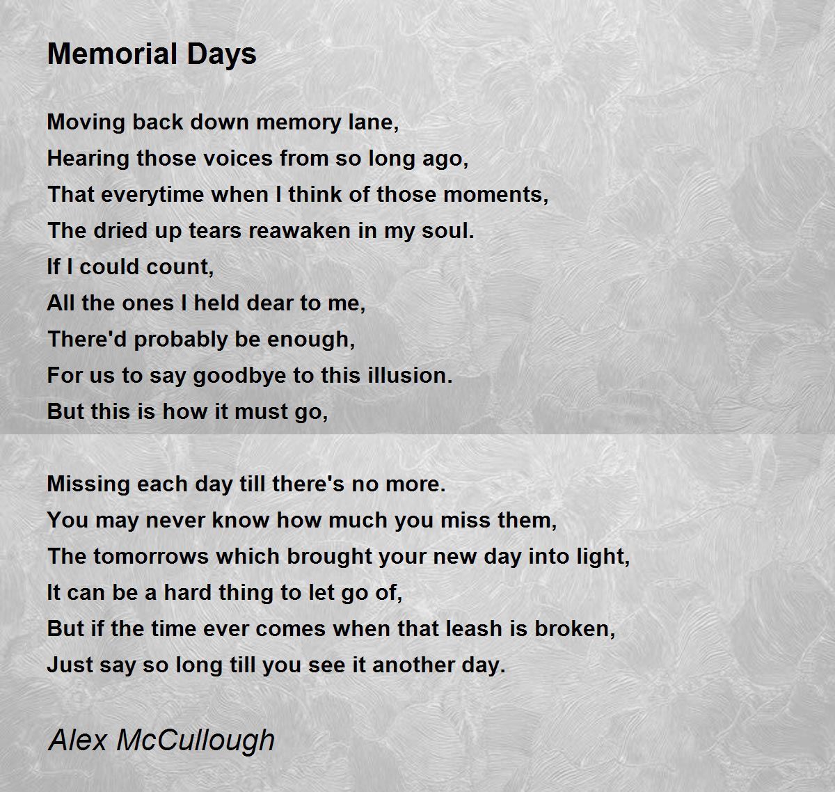 Missing each day till there's no more.