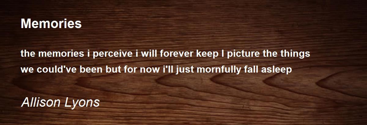 the memories i perceive i will forever keep I picture the things we could've been but for now i'll just mornfully fall asleep