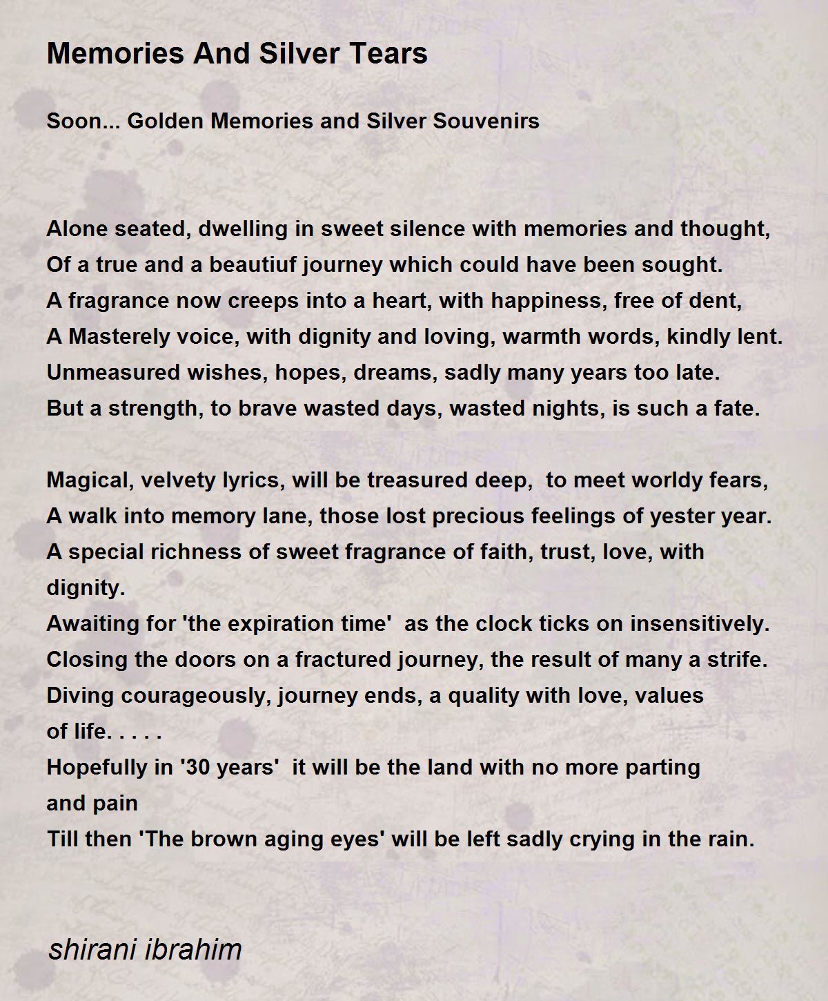 Till then 'The brown aging eyes' will be left sadly crying in the rain.